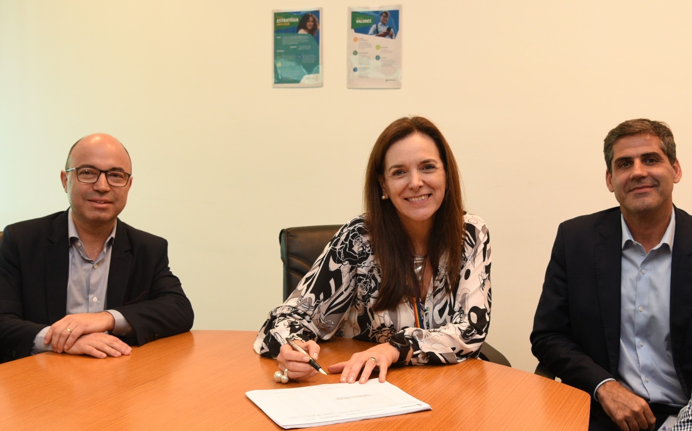 Petrobras' Finance and Investor Relations Director, Fernando Melgarejo, Petrobras' Engineering, Technology, and Innovation Director, Renata Baruzzi, and SLB OneSubsea's Brazil Regional Director, Carlos Tadeu Cunha, during the contract signing