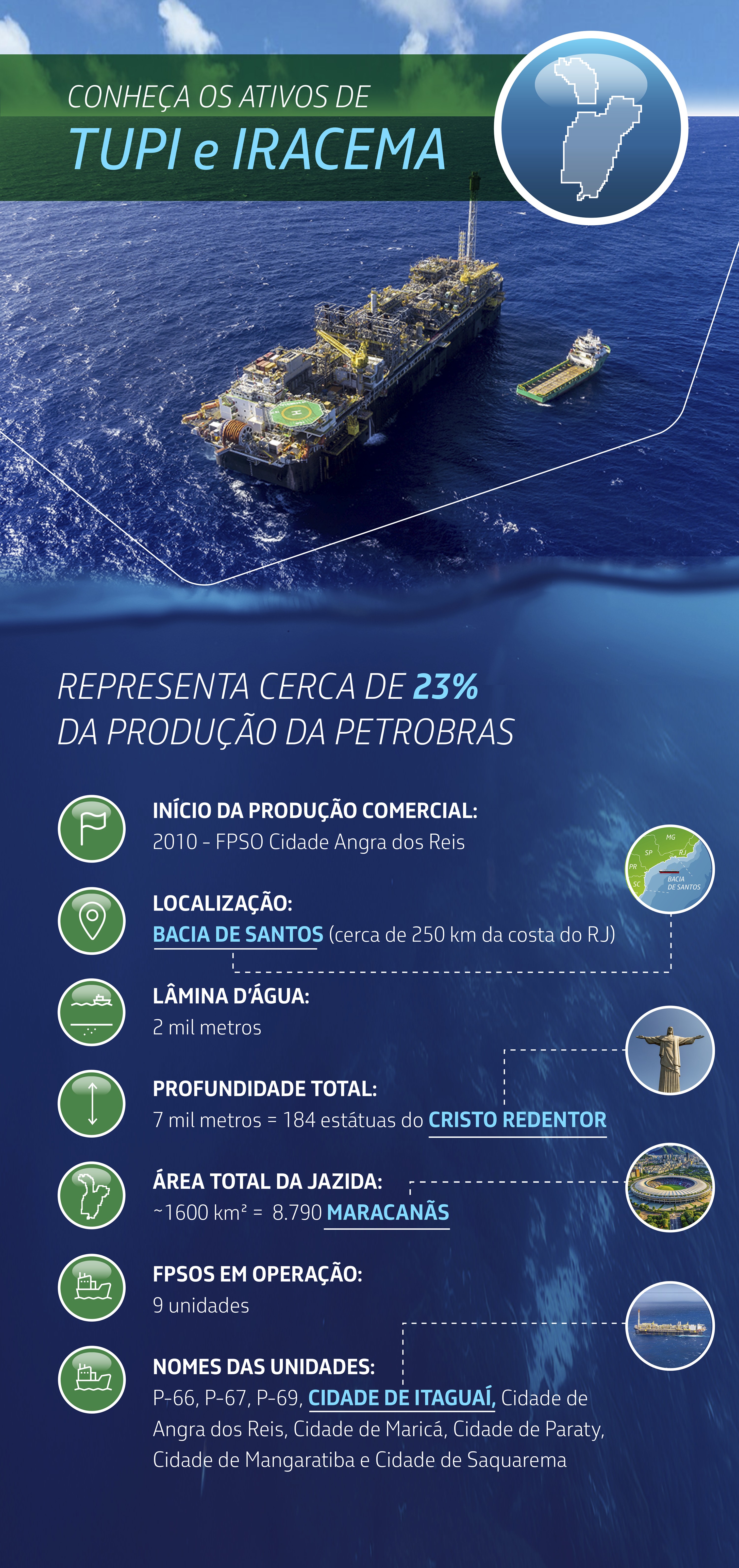 Tupi/Iracema é operado pela Petrobras, com os parceiros Shell e Petrogal Brasil, e a PPSA, representante da União na Jazida Compartilhada de Tupi.