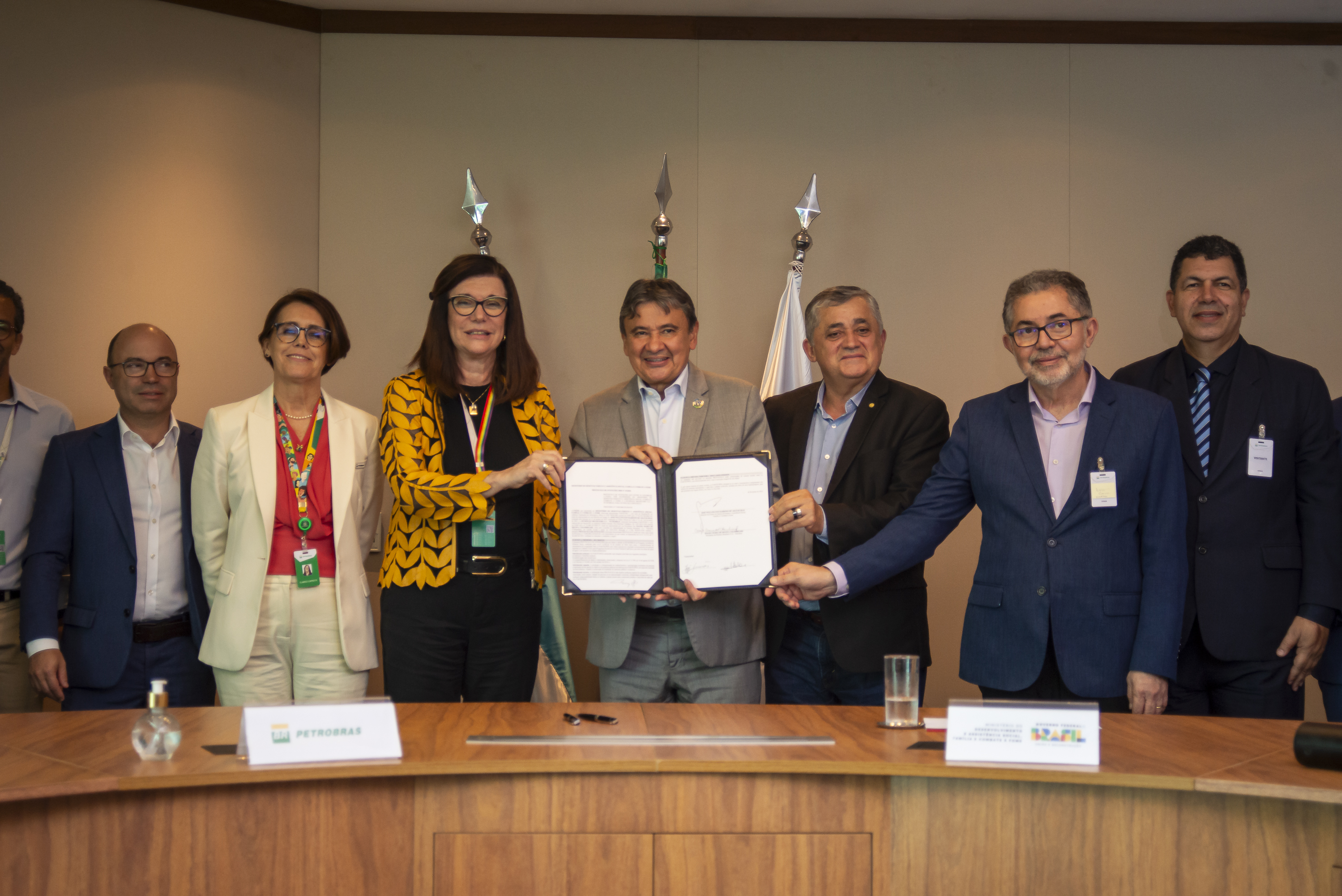 A presidente da Petrobras, Magda Chambriard, e o ministro do Desenvolvimento e Assistência Social, Wellington Dias, assinam adesão da Petrobras ao Programa Acredita no Primeiro Passo