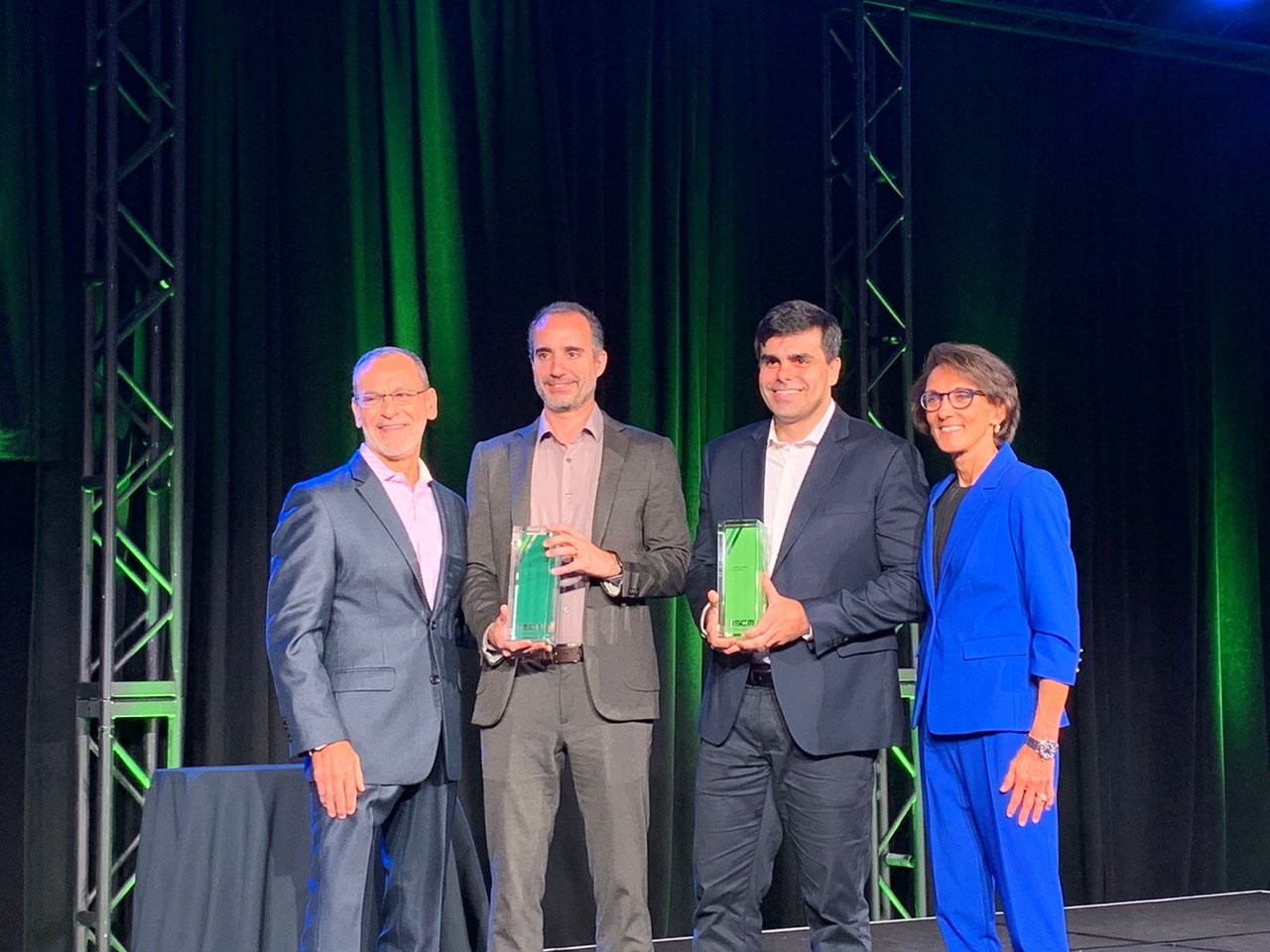 Rafael Paradella (ao centro, à esquerda) e Paulo Henrique Furtado (ao centro, à direita recebem prêmio da ASCM em Chicago